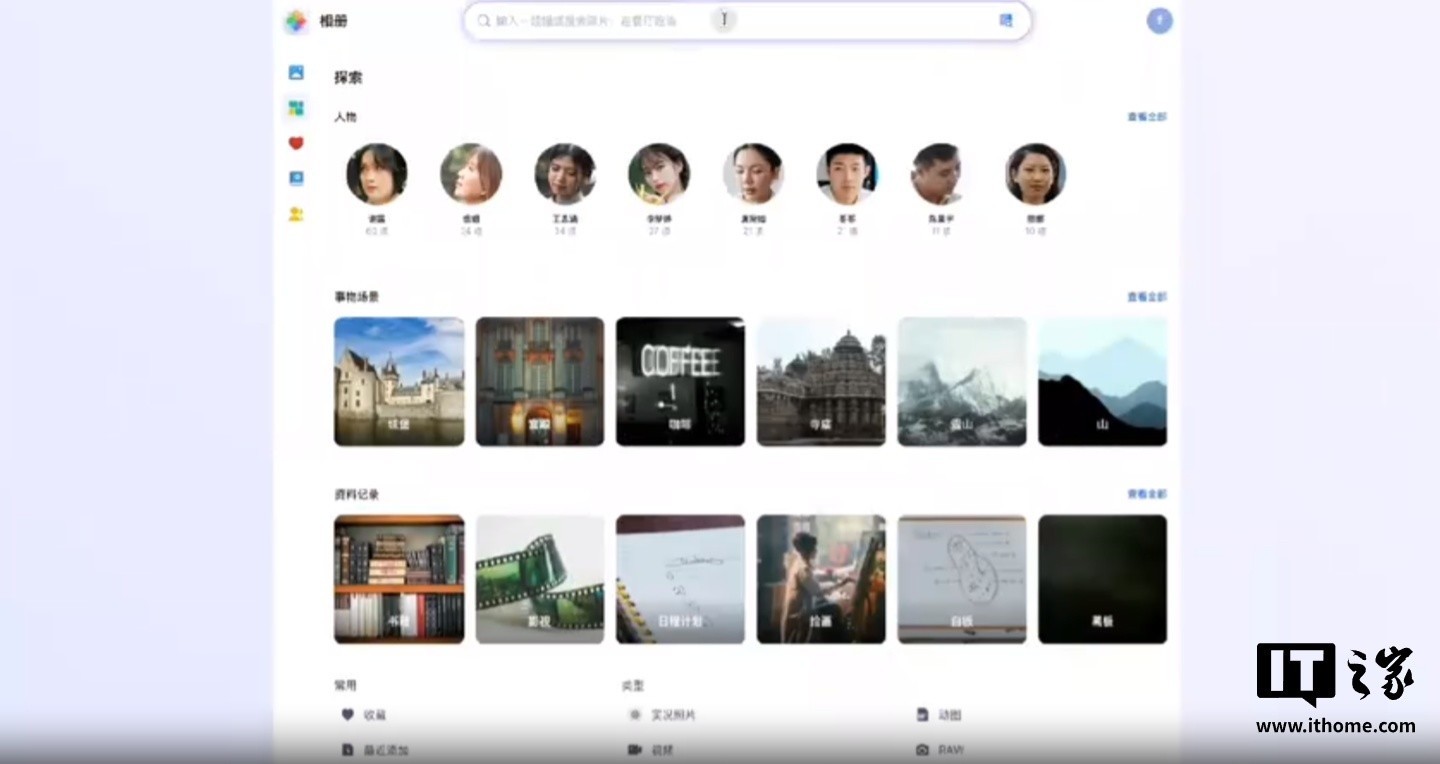 新增“AI 相册”功能,包括人物相册、预览查看人物、以文搜图、智能分类等